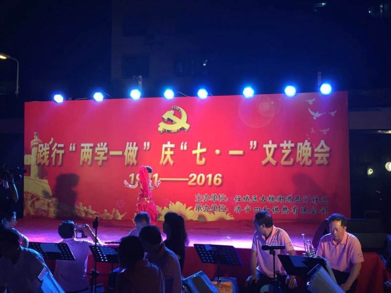 為紀(jì)念中國共產(chǎn)黨成立95周年,進(jìn)一步激發(fā)基層黨組織活力,促進(jìn)和諧社企建設(shè),展示社區(qū)濃厚的文化氛圍和企業(yè)關(guān)愛民生的責(zé)任擔(dān)當(dāng),由任城區(qū)古槐街道西門社區(qū)主辦,濟(jì)寧四和供熱有限公司承辦的“踐行‘兩學(xué)一做’慶‘七·一’”主題文藝晚會(huì)在光明健身廣場(chǎng)隆重舉行,四和供熱公司演職人員同廣大黨員群眾一起載歌載舞共迎黨的生日。
