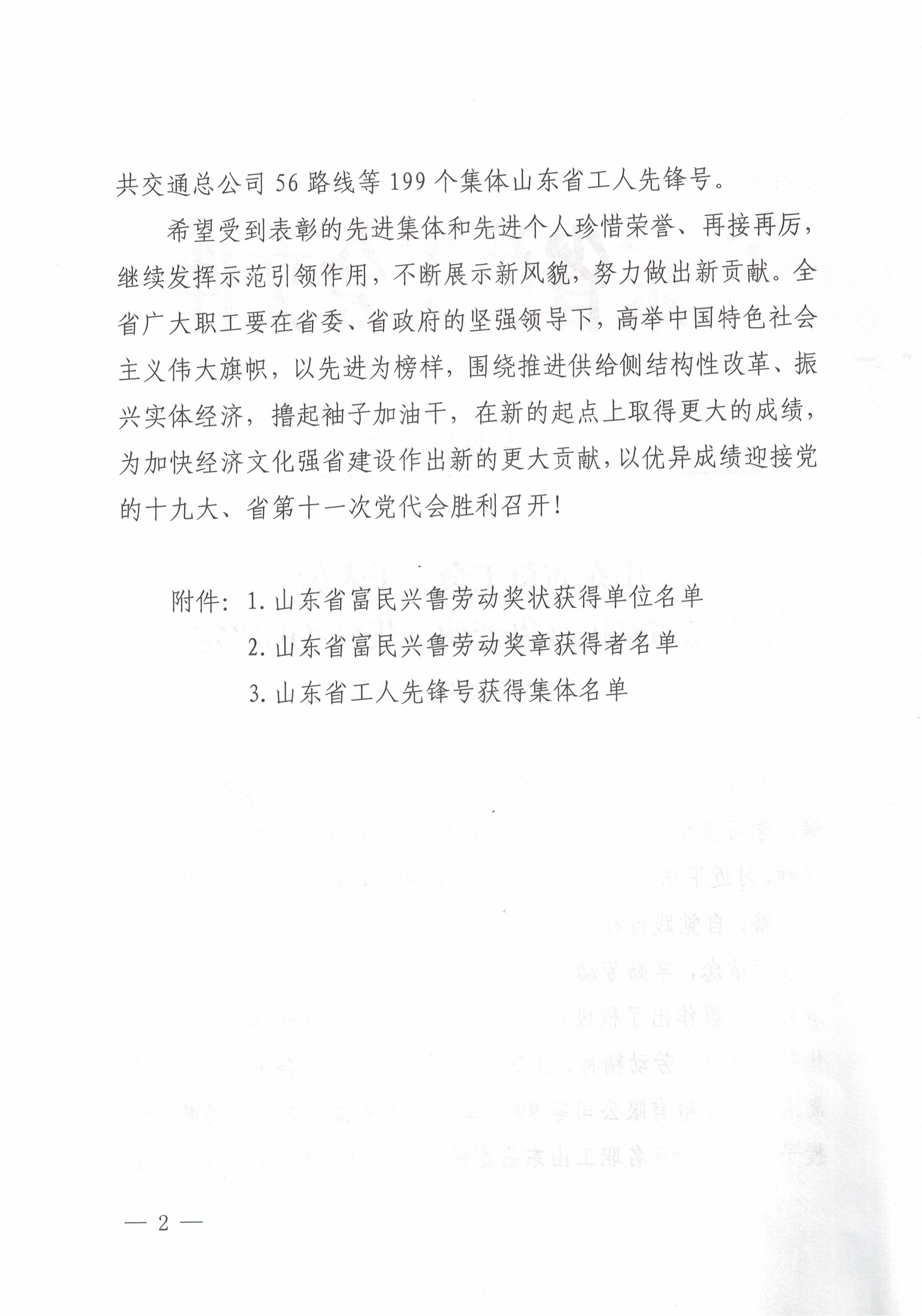 據(jù)了解,“富民興魯勞動(dòng)獎(jiǎng)狀”是山東省總工會(huì)組織評(píng)選的先進(jìn)集體獎(jiǎng)項(xiàng),旨在激發(fā)各單位自覺(jué)踐行社會(huì)主義核心價(jià)值觀,緊跟時(shí)代發(fā)展步伐,堅(jiān)定理想信念,辛勤勞動(dòng)、誠(chéng)實(shí)勞動(dòng)、創(chuàng)造性勞動(dòng),為推動(dòng)全省經(jīng)濟(jì)社會(huì)發(fā)展作出積極貢獻(xiàn),最終為實(shí)現(xiàn)“十三五”規(guī)劃目標(biāo)任務(wù)和全面建成小康社會(huì)建功立業(yè)。