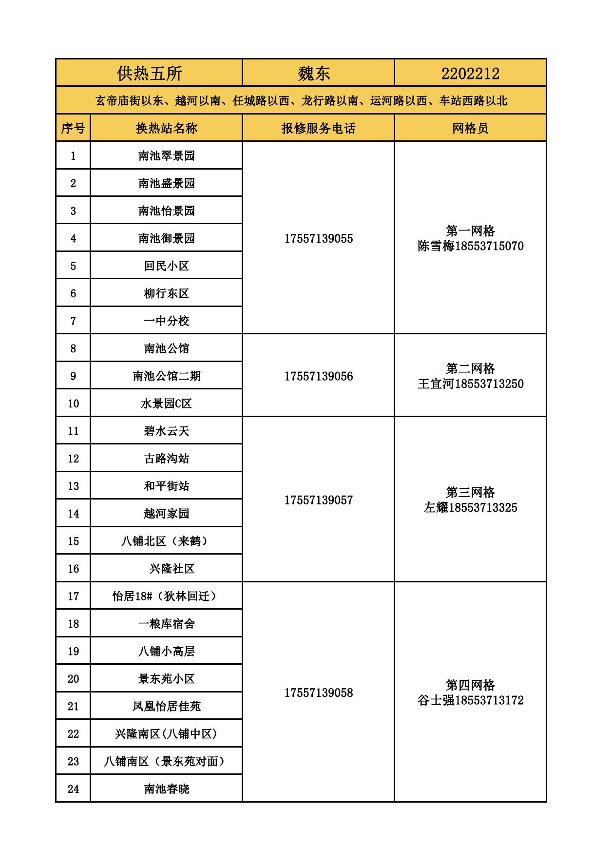 四和供熱公司各供熱服務(wù)所聯(lián)系方式及網(wǎng)格員聯(lián)系方式