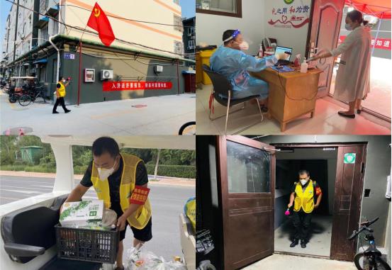 職工劉曉龍在金城街道牛市社區(qū)做防疫志愿者,維持社區(qū)秩序、分發(fā)物資,幫助協(xié)調(diào)解決居民生活需求