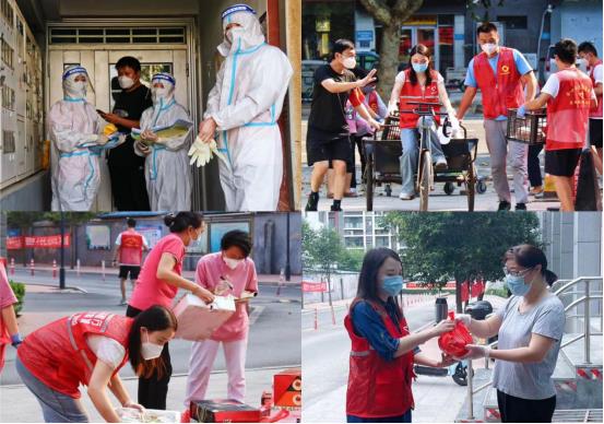 職工申菁菁在高新區(qū)洸河街道隆鑫苑為居民配送生活物資,開展志愿服務