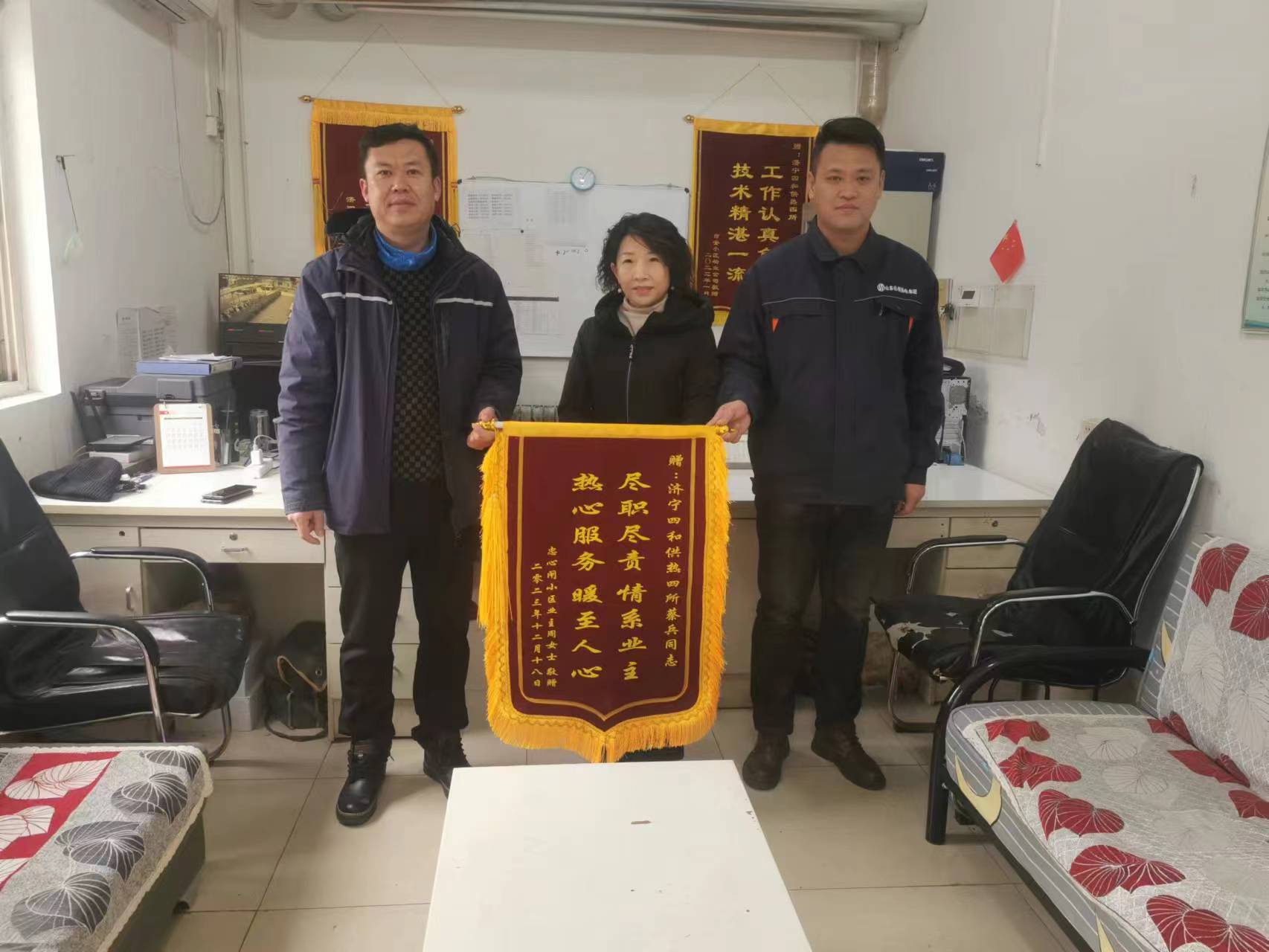 12月18日,忠心閘小區(qū)業(yè)主周女士專程前往濟寧四和供熱有限公司供熱四區(qū)域,對供熱區(qū)域網(wǎng)格員熱情周到的服務(wù)表示感謝,并送去了印有“盡職盡責情系業(yè)主 熱心服務(wù)暖至人心”字樣的錦旗。